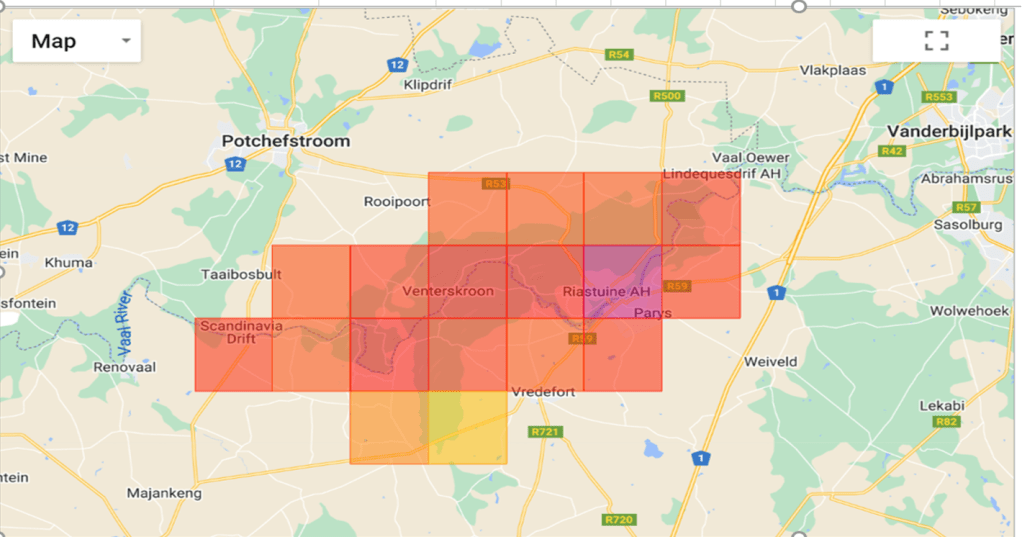 The Potchefstroom -north, -west and -eastern birding routes stretch from the Boskop Dam Provincial Nature Reserve, along the Eleazer Road to the Faan Meintjes Nature Reserve and the Inyala Lodge. This birding area of 27 SABAP2 pentads recorded 352 avian species (July 2023). The Faan Meintjes Nature Reserve and Inyala Lodge route is a prime birding route with 263 species recorded in the Faan Meintjes pentad 2640_2640 alone (see Fig 6).